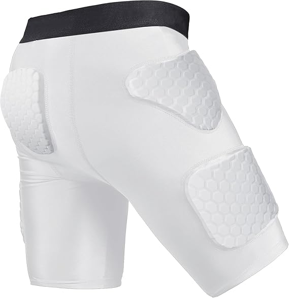 - Men’s football girdle compression shorts with built-in pads for hip, thigh, and tailbone protection.