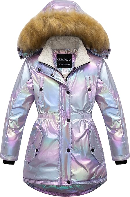 - CREATMO girls’ long winter parka with Sherpa collar offers warm, stylish, durable, ski comfort.